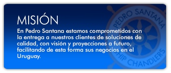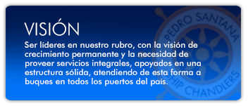 Nuestra misión es mantener a nuestros clientes siempre satisfechos ofreciéndoles productos y servicios de alta calidad colmando y superando sus expectativas. Nuestra visión es ser líderes en nuestra actividad bajo una política de mejora continua y de crecimiento, siempre esforzándonos por la excelencia, ofreciendo un servicio integral en todos los puertos del país, con el apoyo de una estructura sólida y fiable.